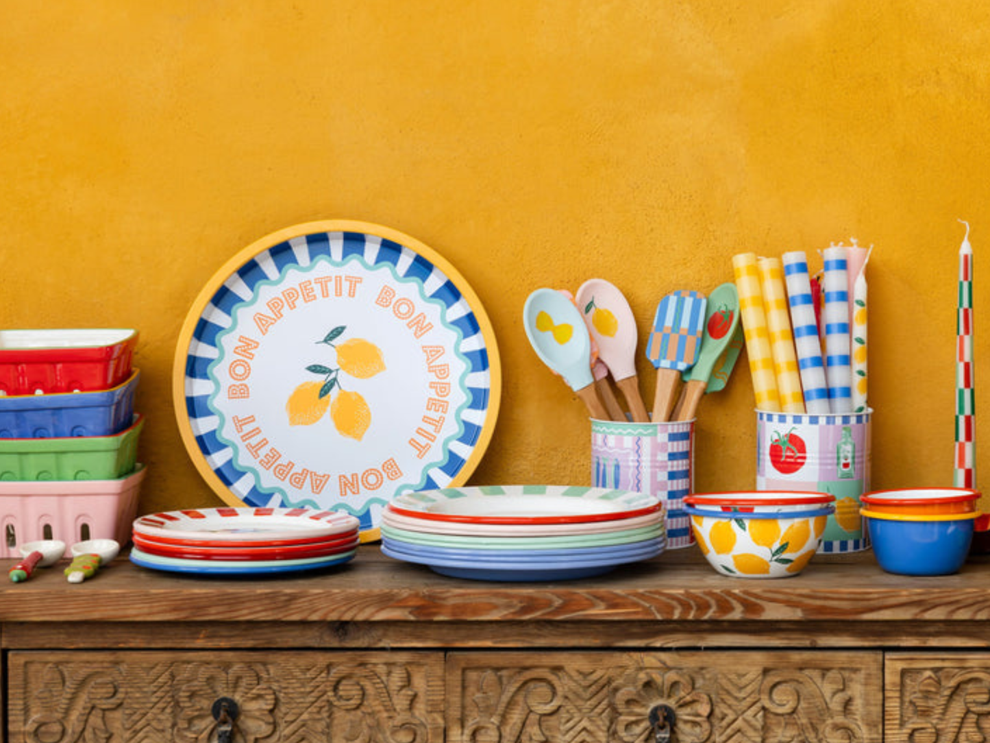 Our new Bon Appétit collection has us dreaming of summer days and eating outdoors. Inspired by the trend for bringing bistro-style living into the home, it’s all about relaxed entertaining - fresh bread, cheese boards, fruit and simple food shared around the table. With the recent sunshine getting us excited for alfresco lunches and long summer evenings, the collection combines colourful enamel pieces, playful fruit and vegetable details, ceramics and gingham for an easy-going café and picnic feel.