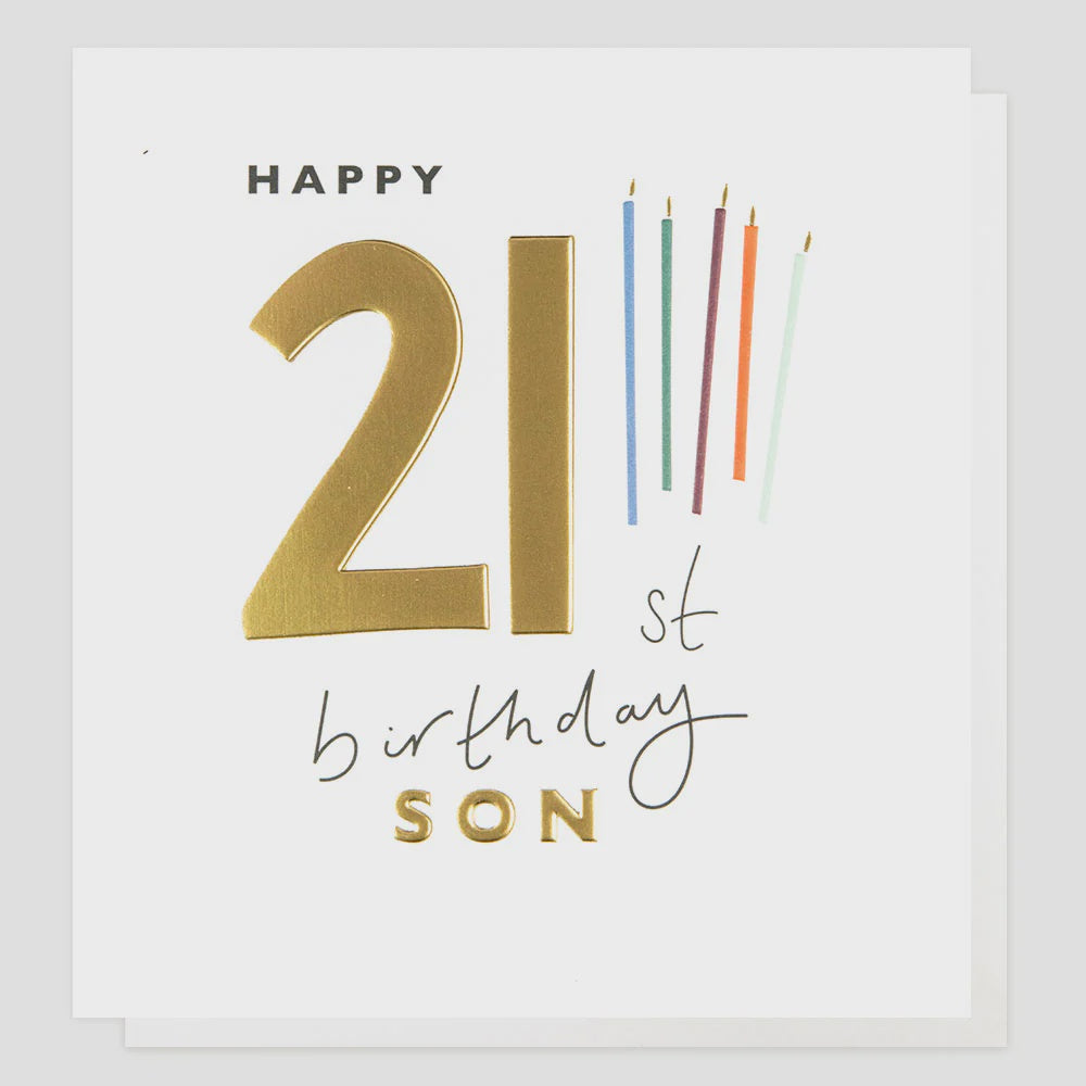 This colourful candles 21st birthday card for your Son features gold foil and embossing for that extra special touch.