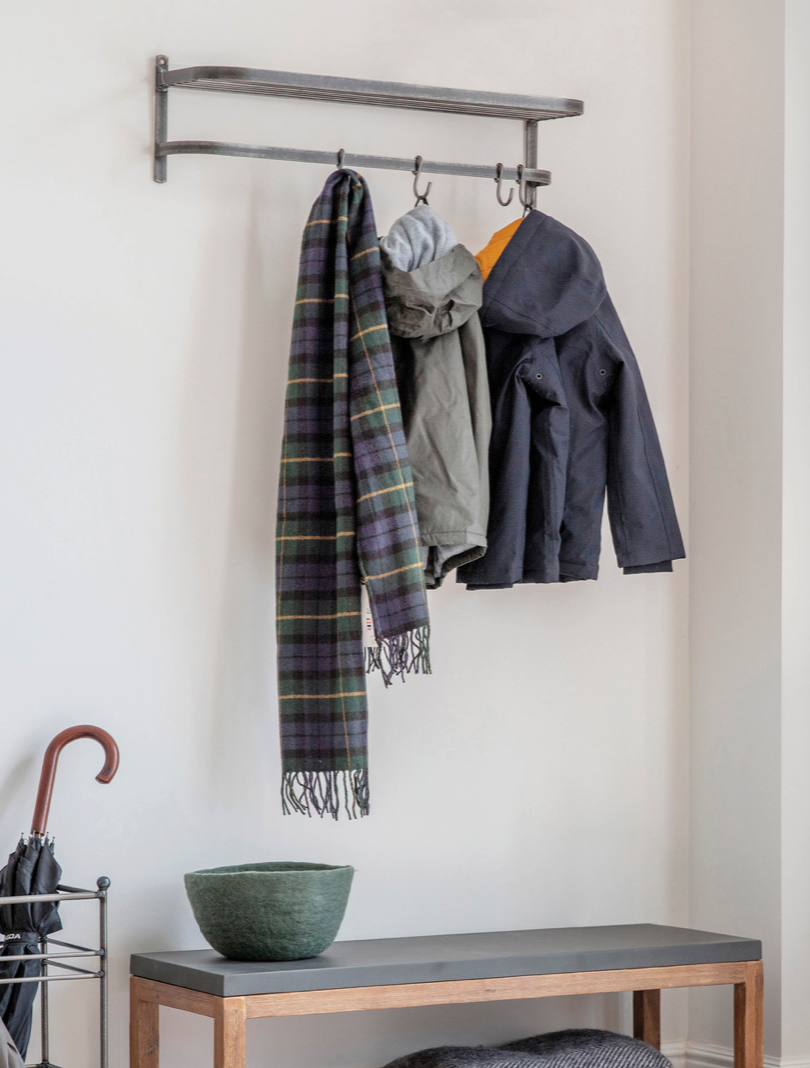 Coated in a clear matt laminate lacquer which makes it smooth without losing its industrial styling. We think it would smarten up any hallway, popping hats, post and accessories on the shelf. With the butcher style 'S' hooks to hang coats and scarves. It could even be used in a bedroom or bathroom, to store accessories or even hang dressing gowns and towels. Whichever room you choose to place this in, it will add a vintage smartness to your home.