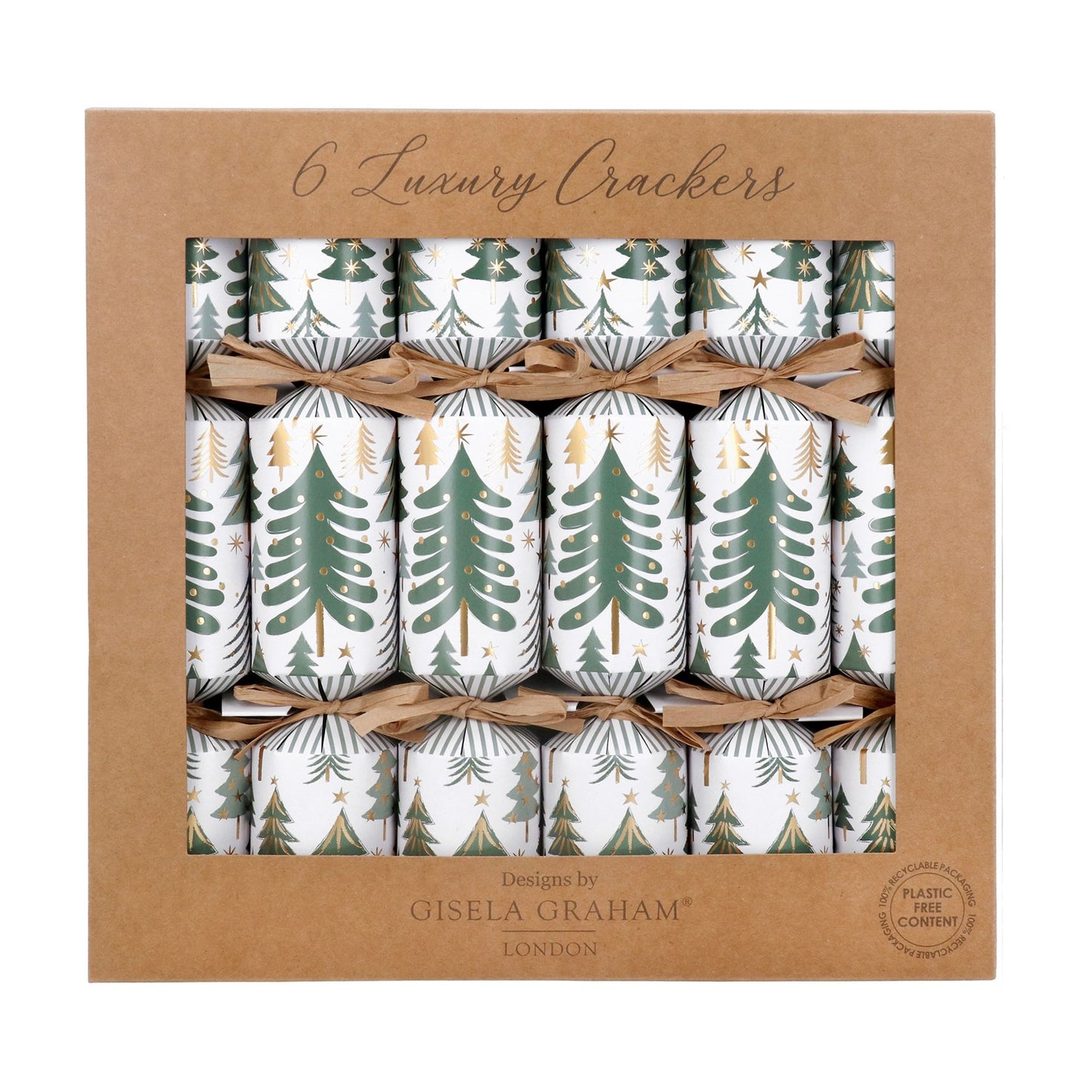 Gisela Graham Box Of 6 Christmas Crackers - Green Trees