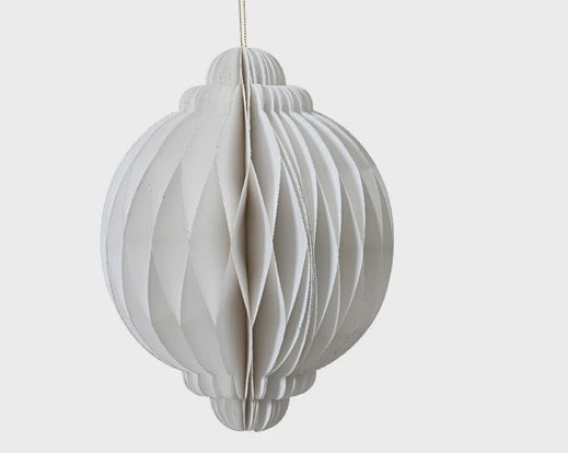 Regular price £7.46A classic White Bauble Paper Decoration with Champagne gittered edges.