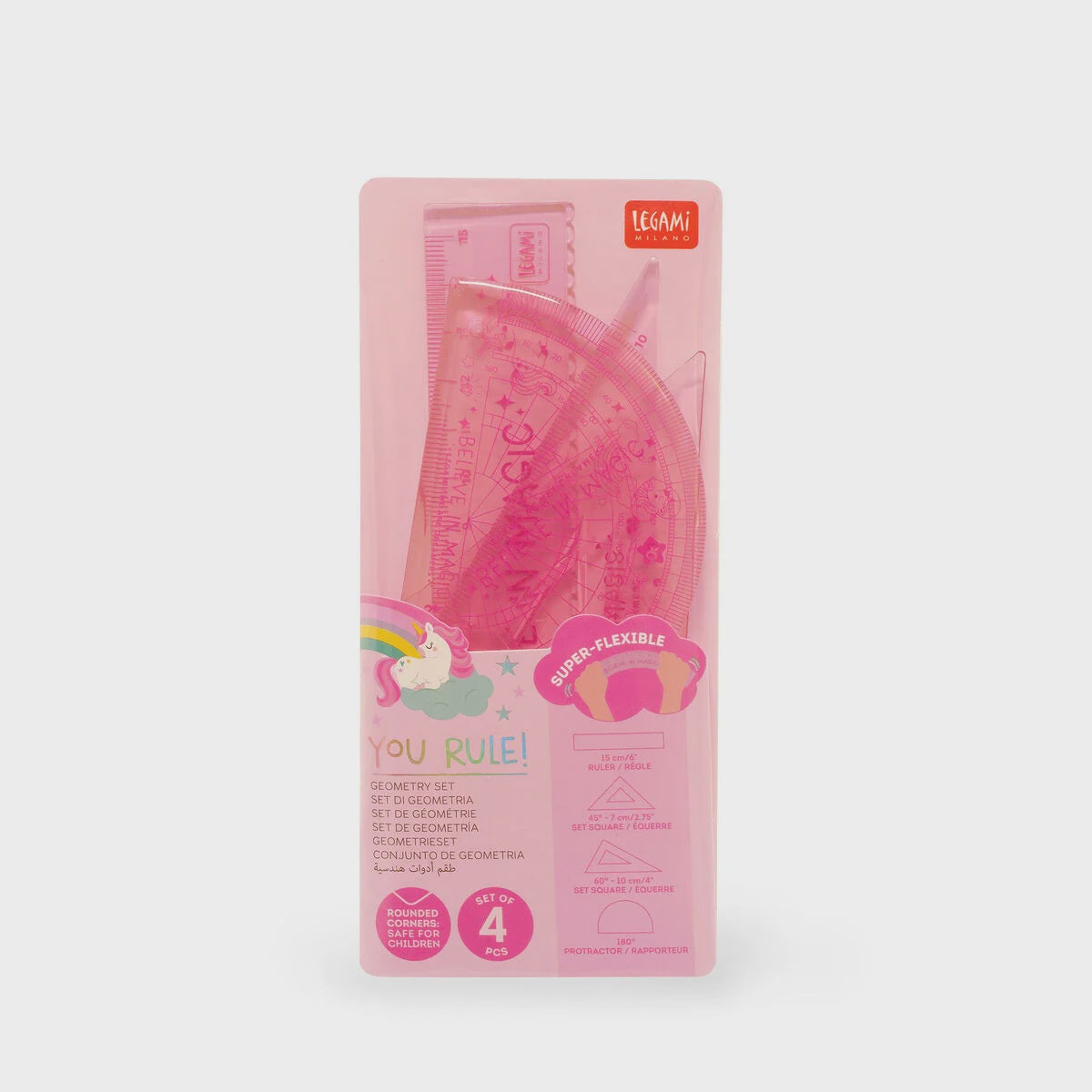 It’s important to have friends you can count on in life... and tools you can measure with, too! Why not both in one: the Geometry Set - You Rule! - Unicorn is the perfect companion at school or at work. And if you like to have a little wriggle room, don’t worry: it’s made from super-flexible material.
