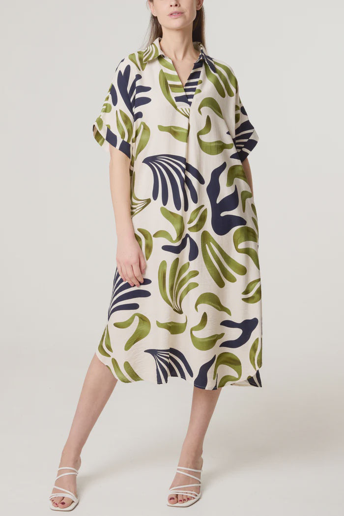 Monstera Print Tunic Dress - Green