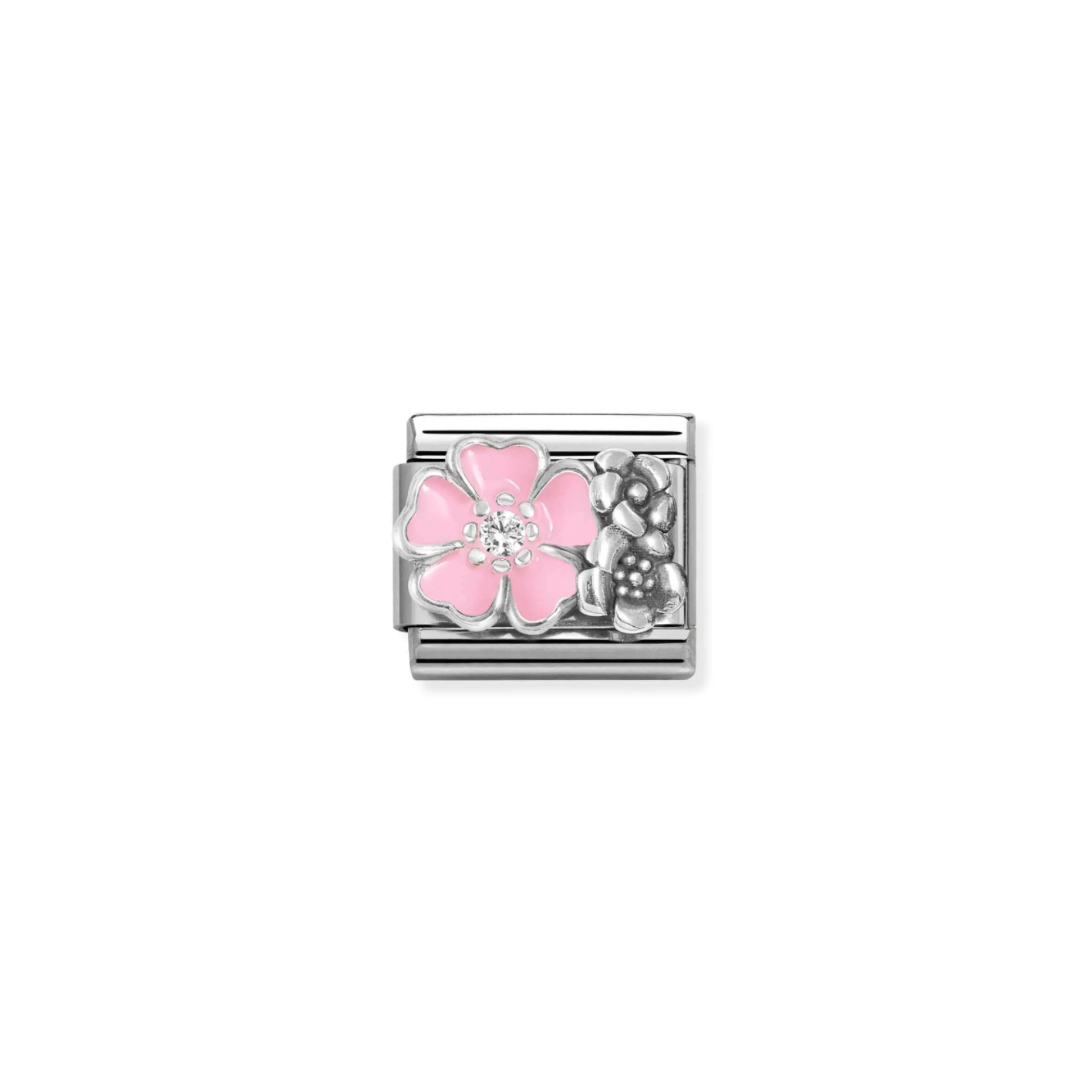 Nomination Classic Silver CZ & Pink Flower Charm.